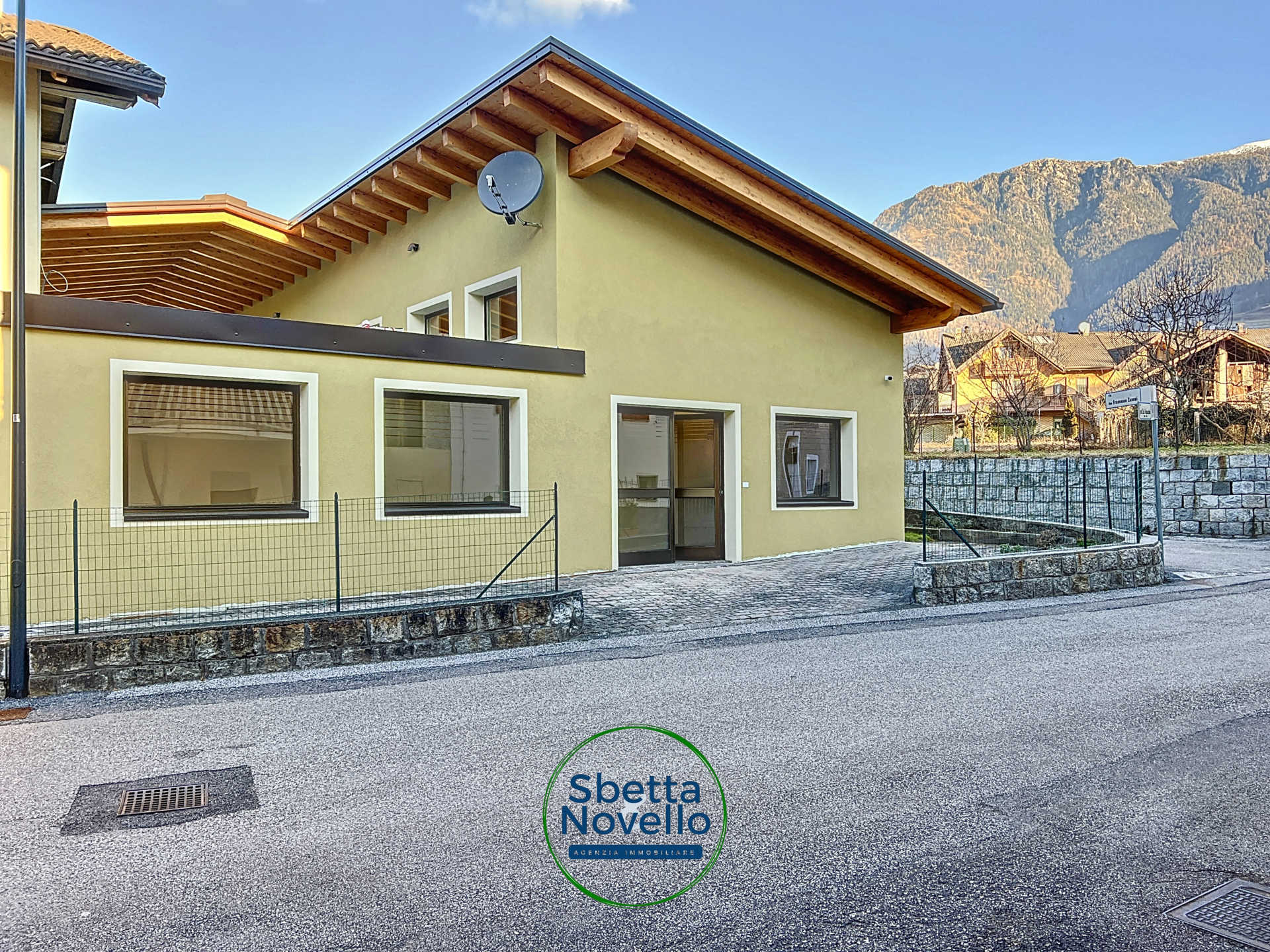 Proponiamo in locazione un ufficio a Castel Ivano nella frazione di Villa. Grandi locali recentemente rinnovati. Piano terra con accesso indipendente e posto auto esterno privato. Si compone di due locali oltre al bagno. Ampio locale principale open space con 4 postazioni lavoro e una reception. Secondo locale adibito a sala riunioni con angolo service e bagno. Tutti i locali sono cablati e arredati. A 50 m dall’ufficio troviamo un comodo parcheggio pubblico con 20+ posti auto.